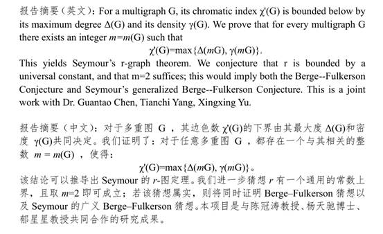 报告题目:Determining the Chromatic index for graphs with duplicated edges